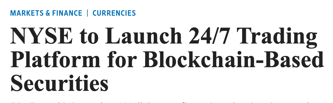 near-term, the infrastructure is being built. the genius act passed. nyse is working on tokenization. twenty-four-seven trading, instant settlement, stablecoin compatibility. agents are shipping. the new pipes are filling up.