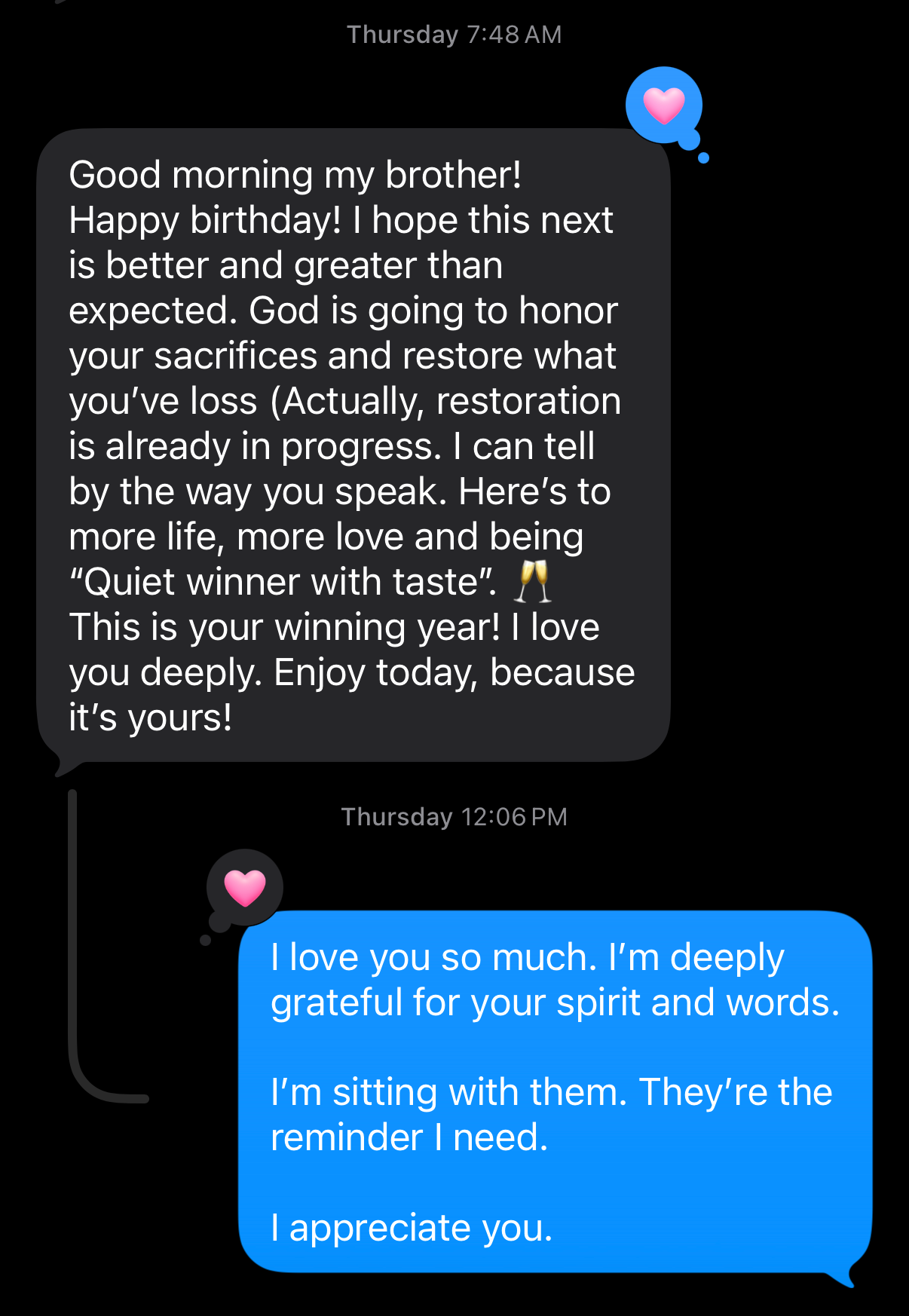 the morning of, i woke up to a text from j. he wrote: “god is going to honor your sacrifices and restore what you’ve lost. actually, restoration is already in progress. i can tell by the way you speak.”