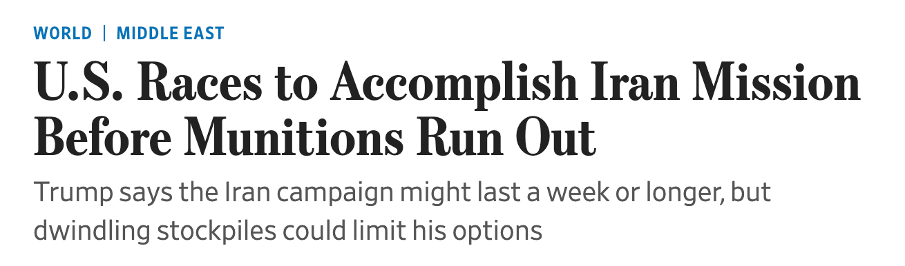 the USS abraham lincoln carrier strike group, previously stationed in east asia specifically to deter china, was redeployed to the middle east to support epic fury. analysts at the stimson center wrote in foreign affairs this week that US indifference to taiwan, combined with watching interceptor stockpiles deplete in real time, could lead china to conclude a window has opened. the asia times put it plainly, the interceptor shortage isn’t just a problem in iran. it’s a strategic inflection point for taiwan.