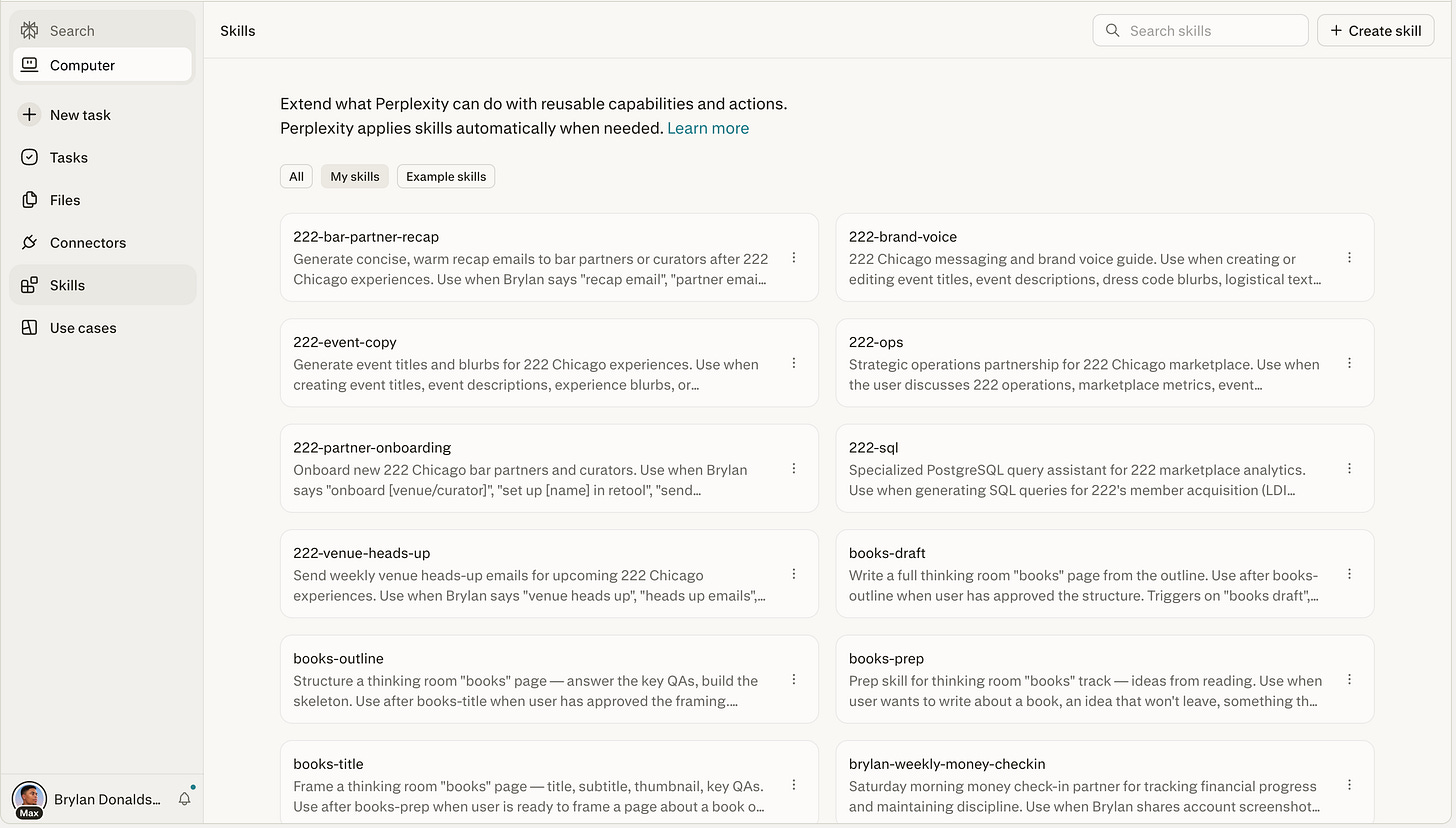 this week i built seventeen skills. sets of instructions that tell the machine what to do when i show up with what i want. the machine already knows its job.