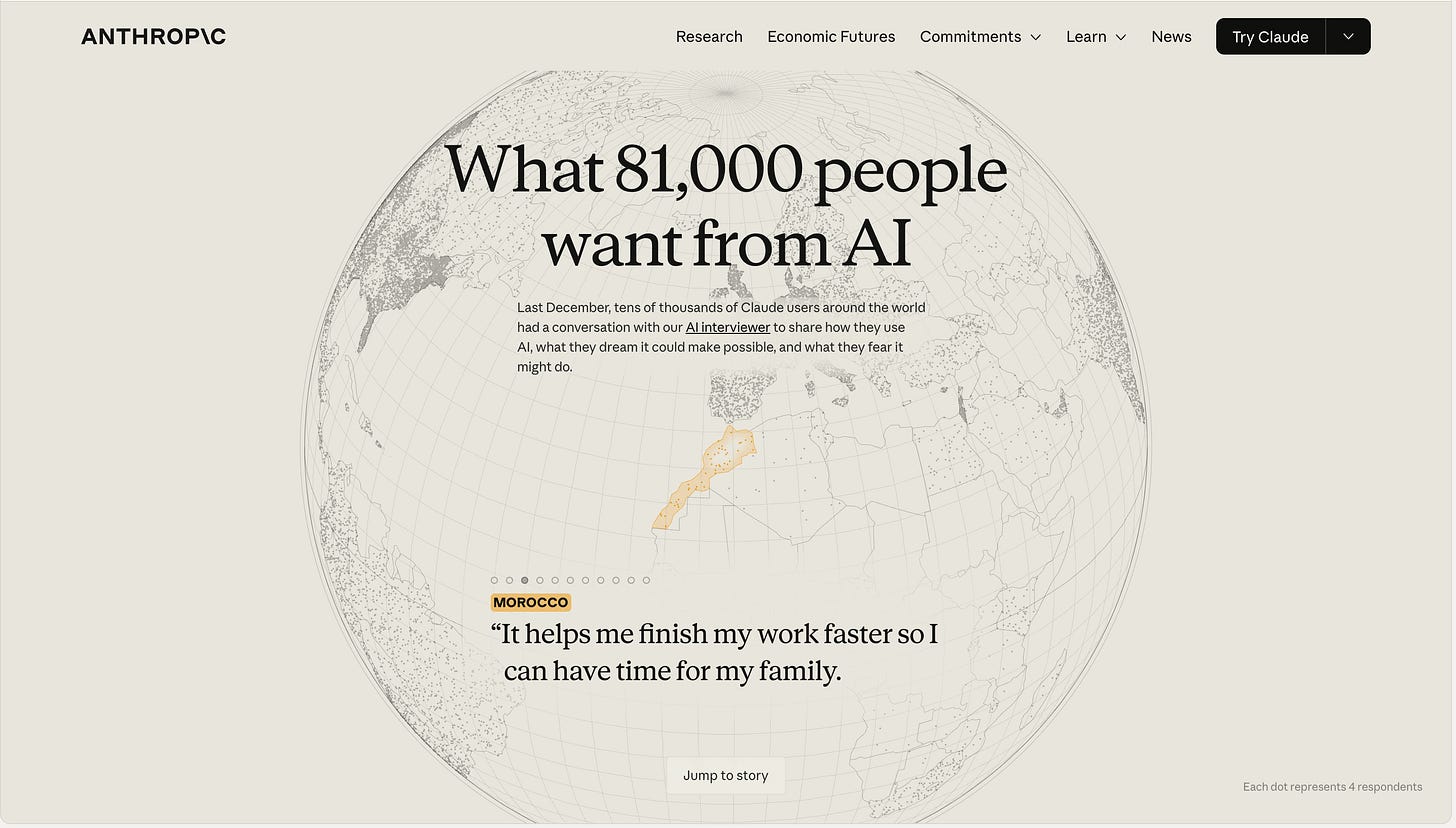 and he’s not alone. anthropic interviewed eighty-one thousand people across a hundred and fifty-nine countries. what people asked for most wasn’t speed. it wasn’t efficiency. it was presence. something that actually understands their situation. the people who need ai most aren’t asking for a faster tool. they’re asking for a kinder interface. one that meets them where they are.